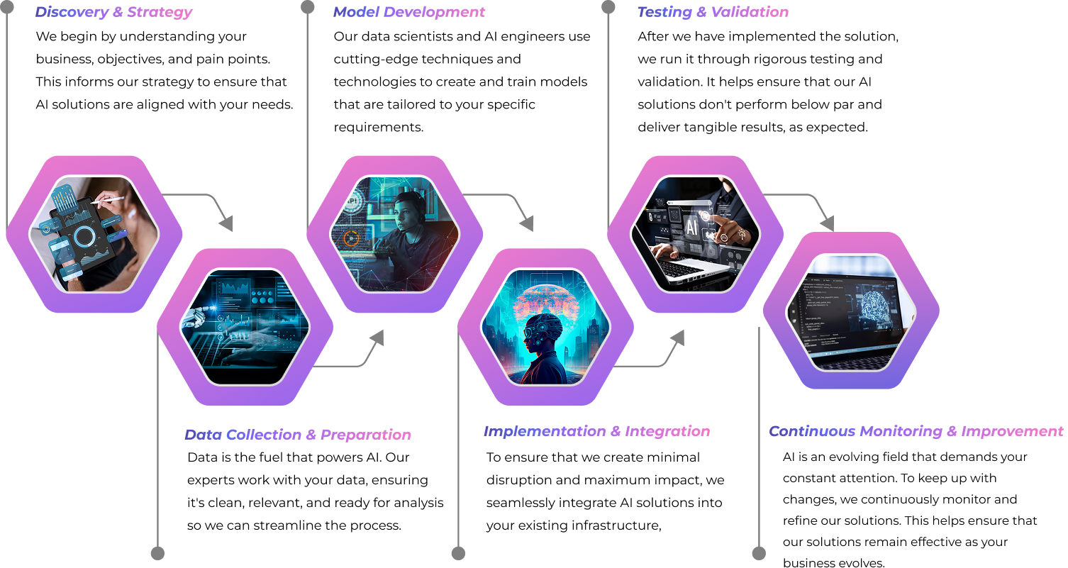 At Acclyne, no matter how intricate the AI landscape is, we will navigate it with finesse. Our streamlined development process has the potential to demystify complexities and solve them by integrating simplified AI solutions into your business. From data refinement to real-time implementation, we turn your challenges into user-friendly solutions, making AI innovation accessible and impactful.